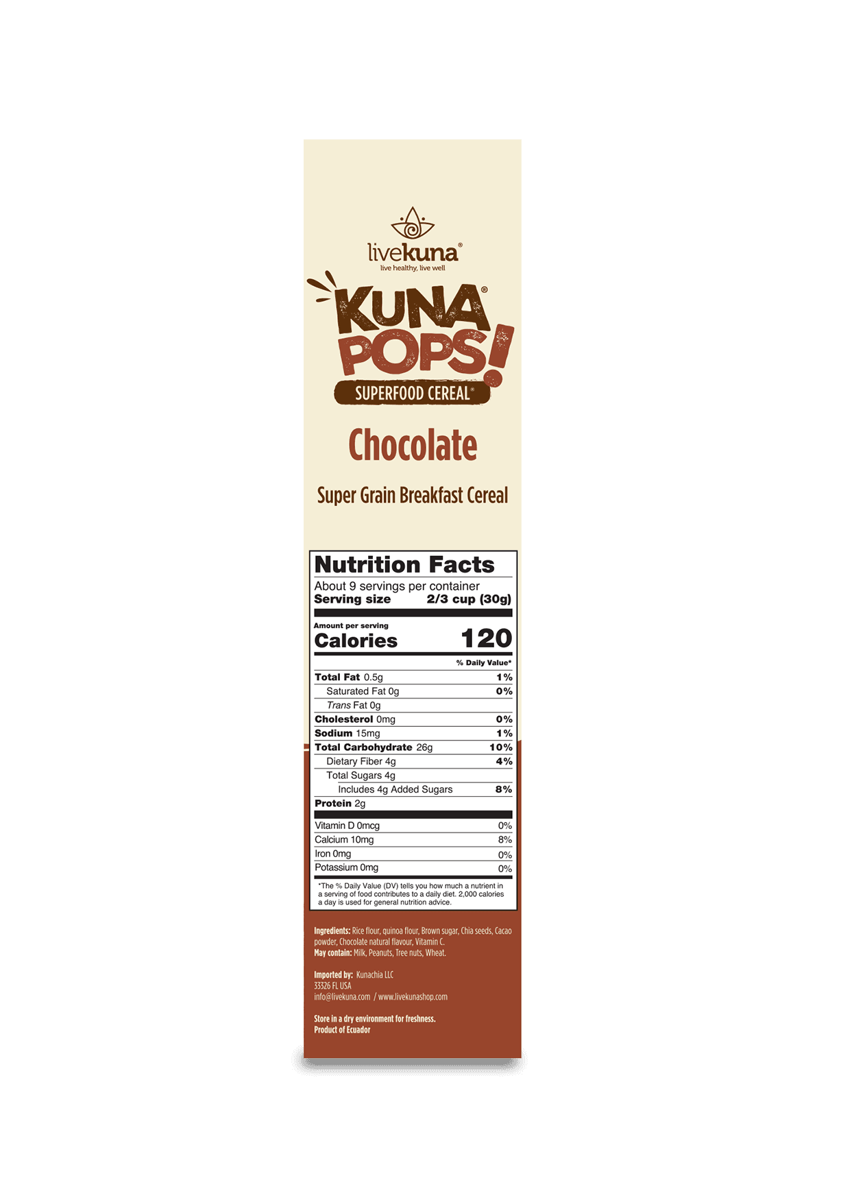Rice flour, Quinoa flour, Brown sugar, Chia seeds, Banana natural flavour, Vitamin C.